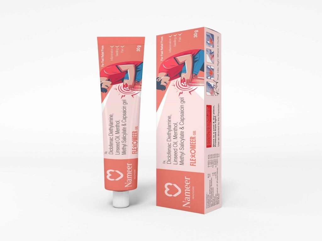 Flexomeer Gel is a fast-acting topical pain relief gel containing Diclofenac Diethylamine, Linseed Oil, Menthol, Methyl Salicylate, and Capsaicin. It provides effective relief from pain, swelling, inflammation, and stiffness associated with musculoskeletal disorders, sprains, strains, arthritis, and sports injuries. Its cooling and warming action helps to soothe sore muscles and joints, offering targeted relief right where it hurts.