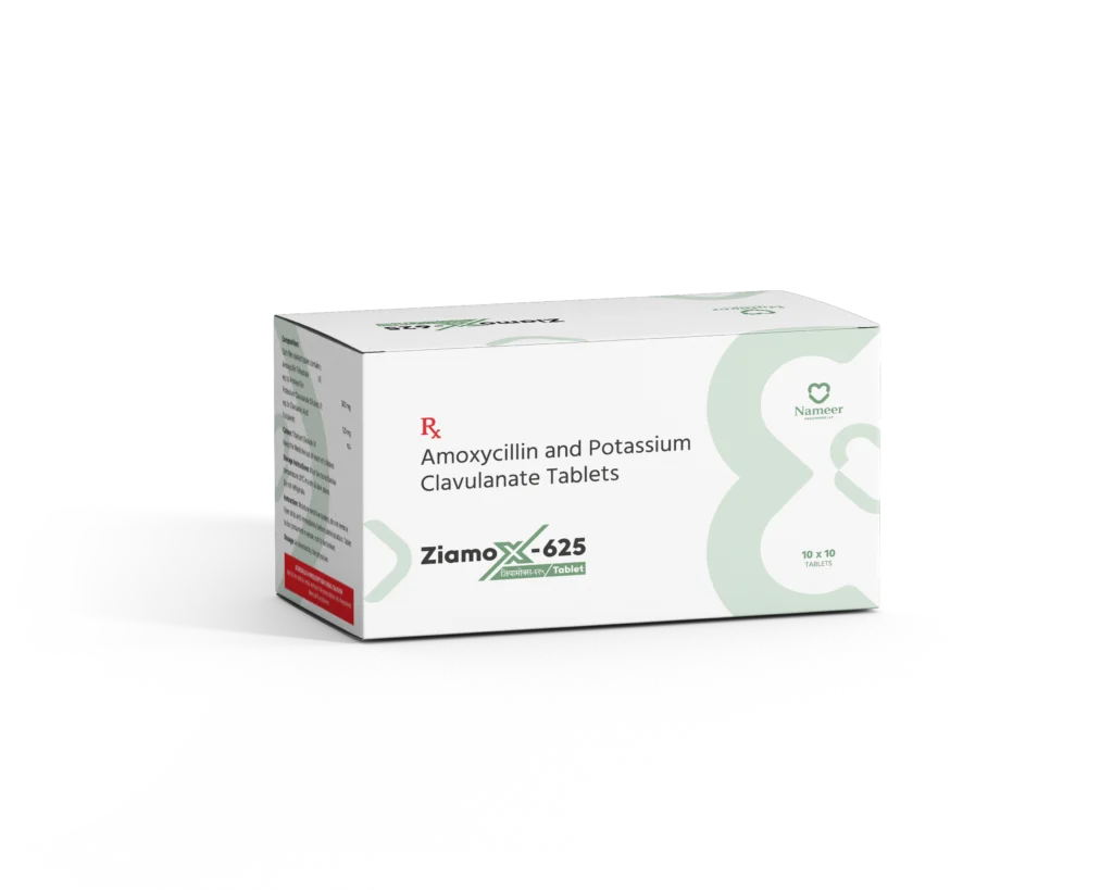 ZiamoX-625 Tablet is a broad-spectrum antibiotic combination containing Amoxycillin and Potassium Clavulanate. It is effective against a wide range of bacterial infections by inhibiting bacterial cell wall synthesis and overcoming resistance caused by beta-lactamase producing organisms.
